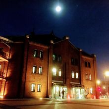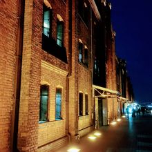 ライトアップされた赤レンガ倉庫はムーディー