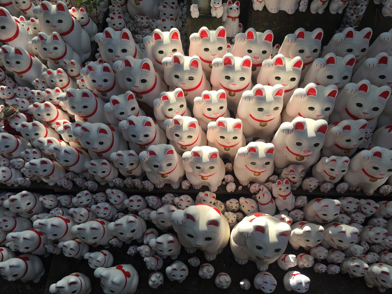 お寺の方に聞いたところ、ここで招き猫を購入した方が願いが叶ったあとにお寺に戻しに来てこんなに集まったそうです。