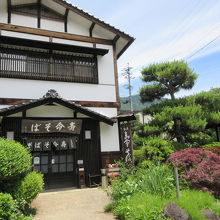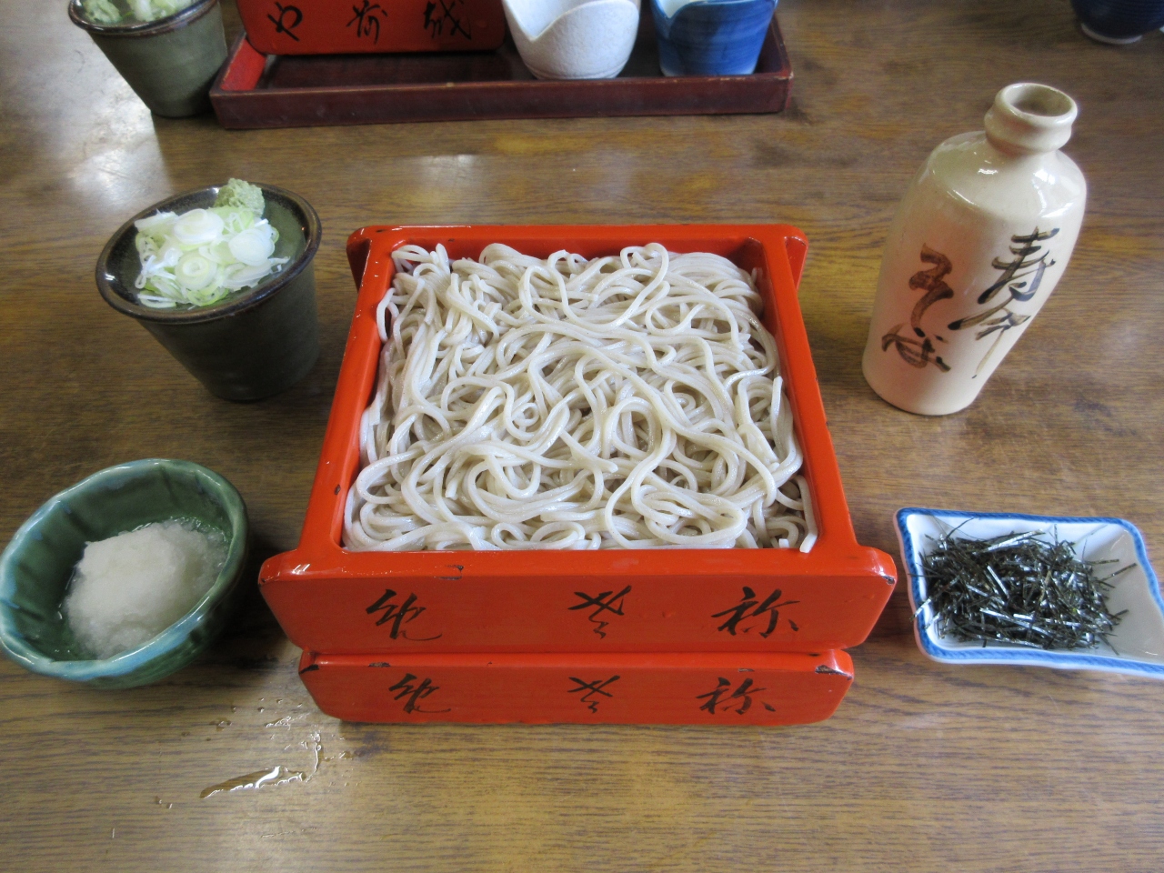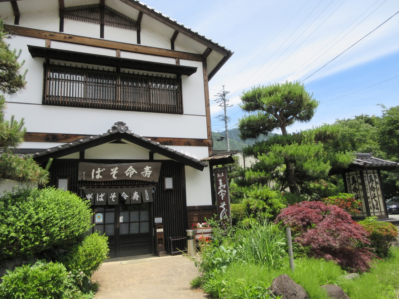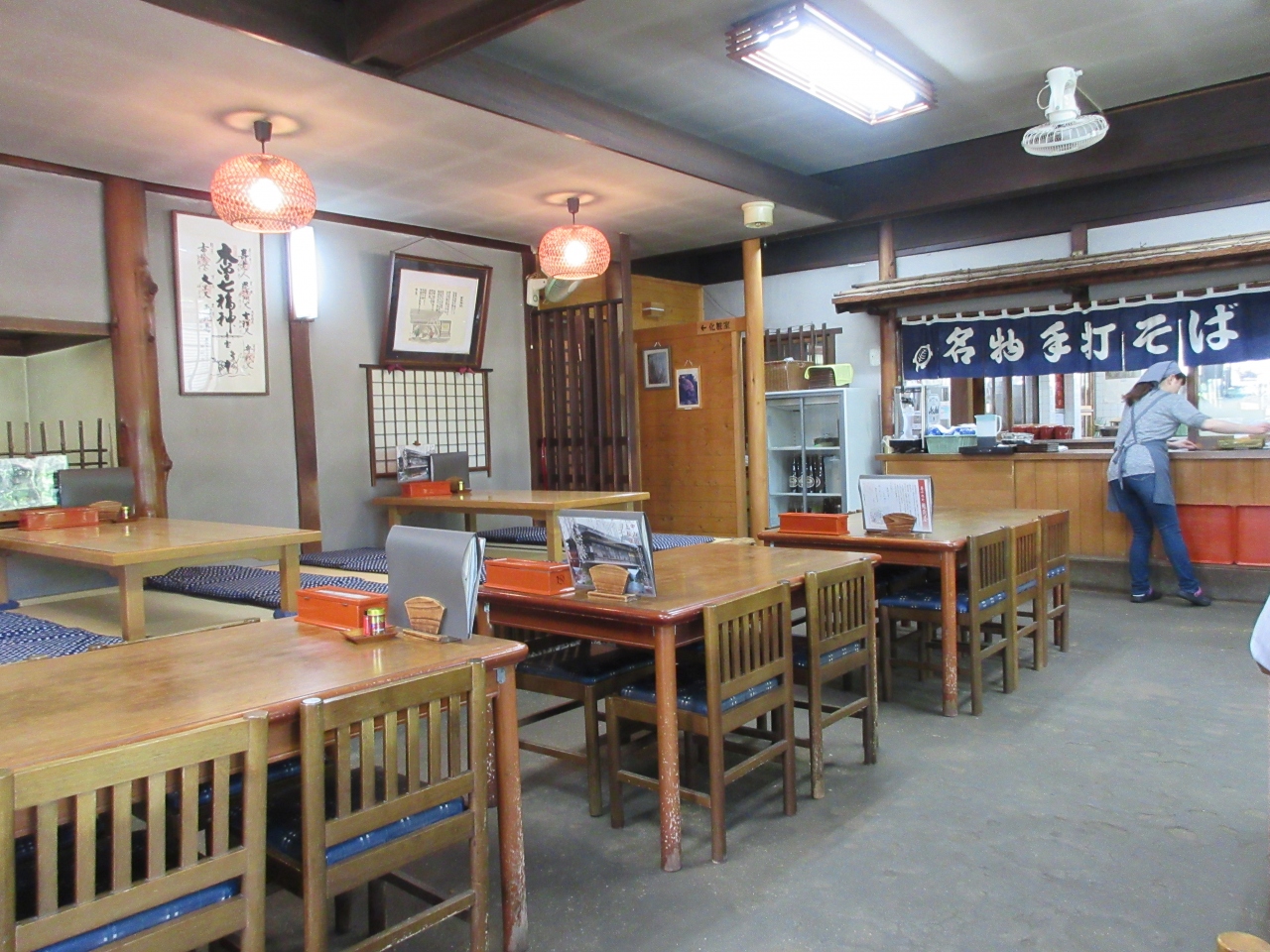 寝覚の床へ行く前に19号沿いの越前屋で蕎麦を食べました。1624年創業の日本で2番目に古い蕎麦屋と言われているようです。喜多川歌麿、十返舎一九、島崎藤村などの書や画に登場しています。一人前二枚のおろし蕎麦と五平餅と盛蕎麦一枚のセットを注文しました。平日昼で観光客と地元の人が利用していました。白い蕎麦が特徴で蕎麦のこしは普通でした。つけ汁は辛めではなくて好みの味でした。小さな丸い五平餅三個、ポテトサラダ、フキの煮付け、漬物に盛一枚のセットは珍しい組み合わせでした。忙しい中、店員さんに寝覚の床までの行き方と駐車場について聞くと丁寧に教えてくれました。旅館もやっていた老舗のおもてなしと情報に感謝です。