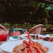 御苑前でごはんを食べるということでたまたまにぎわっていたこちら。テラス席めっちゃロマンチックです。料理はパスタにピザに魚に肉にとにかくたくさんオーダーしましたがあっという間に閉店時間になっちゃった。残すのイヤだったな。