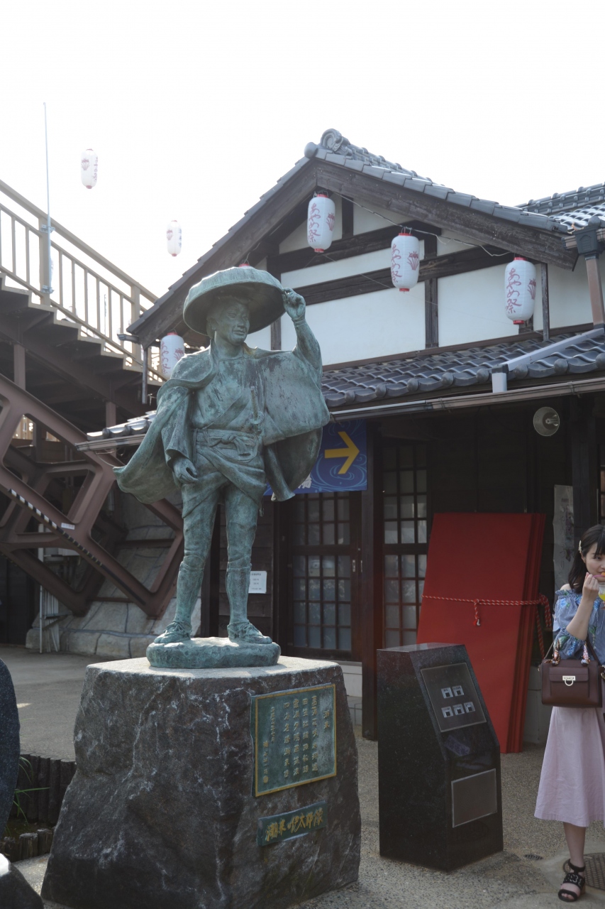 潮来のあやめ園の中、十二橋めぐりのボートが発着する乗り場の前にある像です。