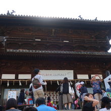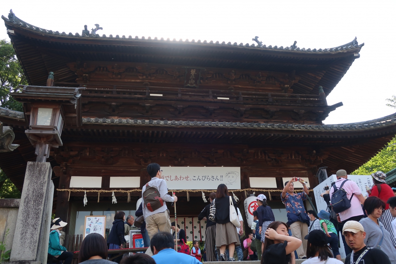 金刀比羅宮の石段を登り始めて365段目、本宮までに石段785段のほぼ中間点にある大きな楼門が金刀比羅宮 大門です。1650年に水戸光圀の兄である松平頼重候から寄進されたものだそうです。この門がゴールではなく、この門を潜るとやっと金刀比羅宮の境内になります。ここから先は勾配もきつくなってくるので、ここらで一服すると良いでしょう。