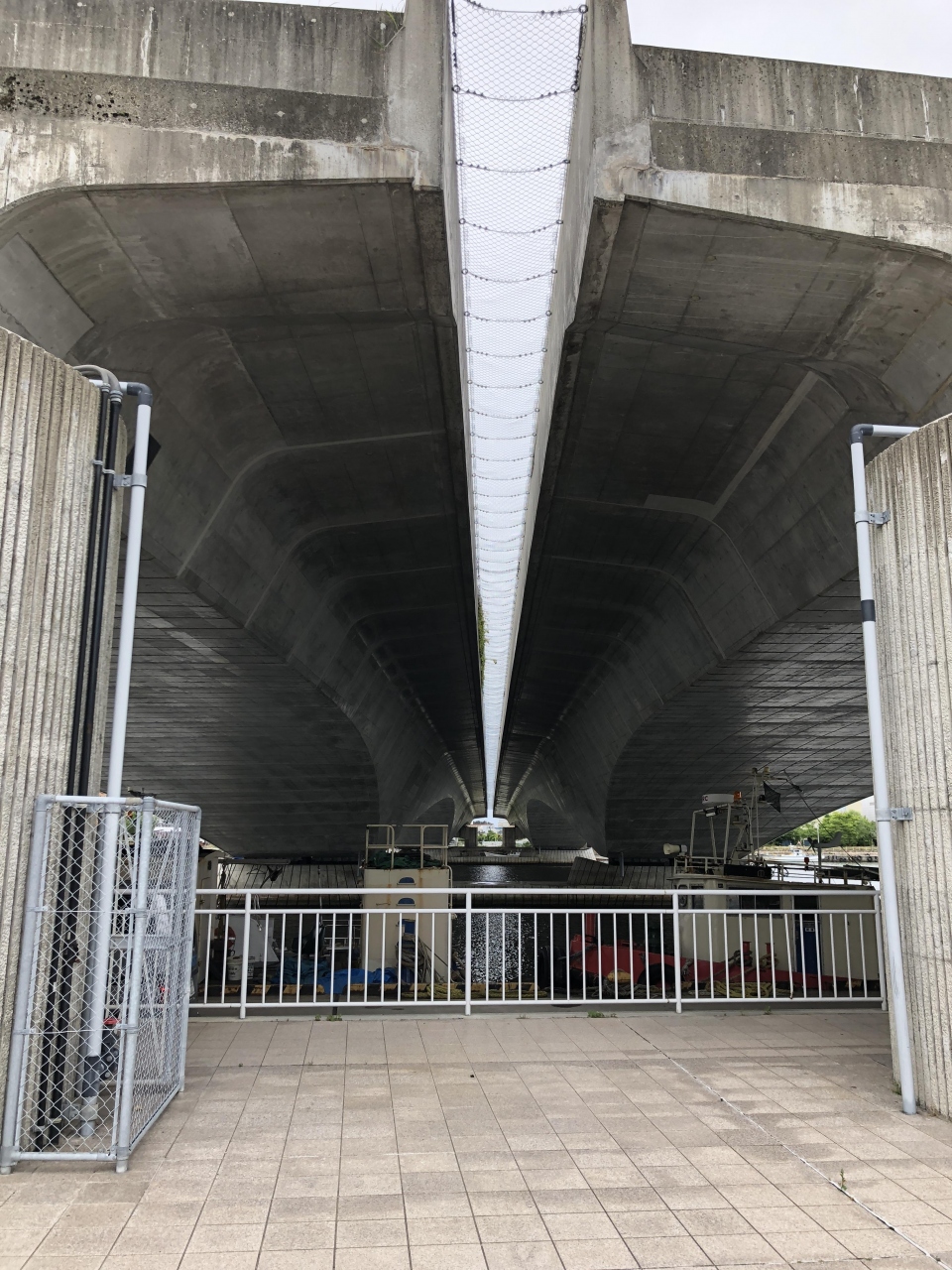 国の重要文化財となっている萬代橋の景観を邪魔することなく、新しく整備された朱鷺メッセとうまく調和するように、信濃川のリバーフロントは実によく考えられて作られている。新潟市を貫く第1級国道である7号線の橋として、上りと下りが分割されて間をネットでつないであったり、橋梁にエレベーターを設置してバリアフリーに気を使ったりで、とても美しいフォルムに仕上がっていると思う。