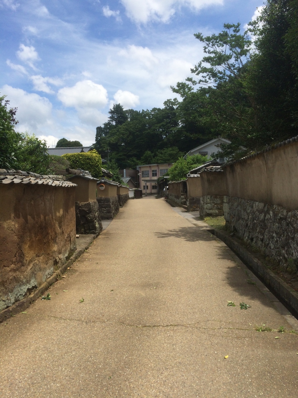 思ったより短い通りでした。車1台通れるぐらいの道幅で、下が石垣、上が土で塗ったような壁が連なっていました。屋敷や無料で入れる博物館のような施設もあります。土産店、宿泊施設堂はなかったのでごちゃごちゃ感がないのが良かったです。