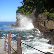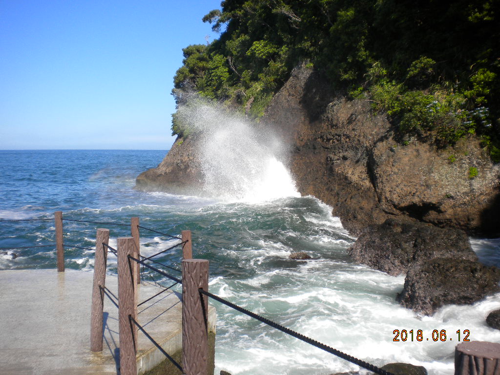 下田公園の帰りちょうど風も有り白波が立っているので寄ってみました、満潮にはまだ時間が有りましたが、結構良い感じでお天気のせいか虹もかかってなかなか良かったです。坂をちょっと降りますがすぐ遊歩道波の有るときは気をつけないとちょっと濡れ波そうですよ。