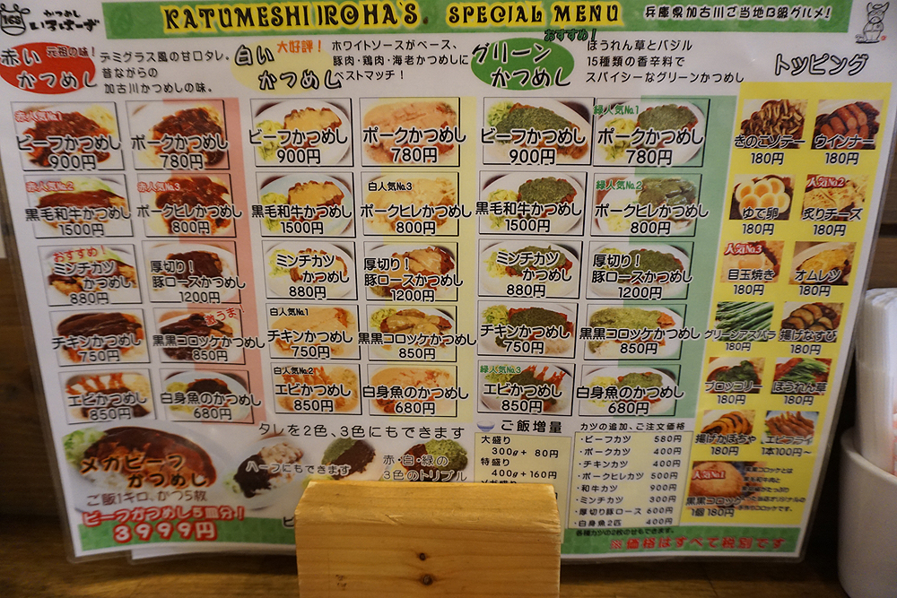 ずっと気になっていた加古川のB級グルメ、かつめし。元祖「いろは食堂」の味を引き継ぐお店です。デミグラス系の赤いかつめし。ホワイトソース系の白いかつめし。ほうれん草、バジル系のグリーンかつめしと3種類あります。僕は、デミグラス系にしました。甘めで濃厚で、個人的には最高の一品でした。超、おすすめです!