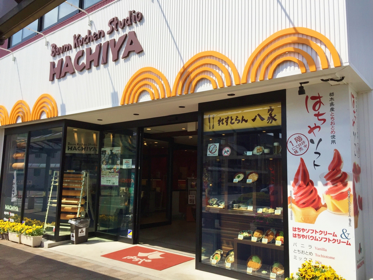 駅のすぐそばにある「バームクーヘン工房はちや」の2階にあるレストランです。