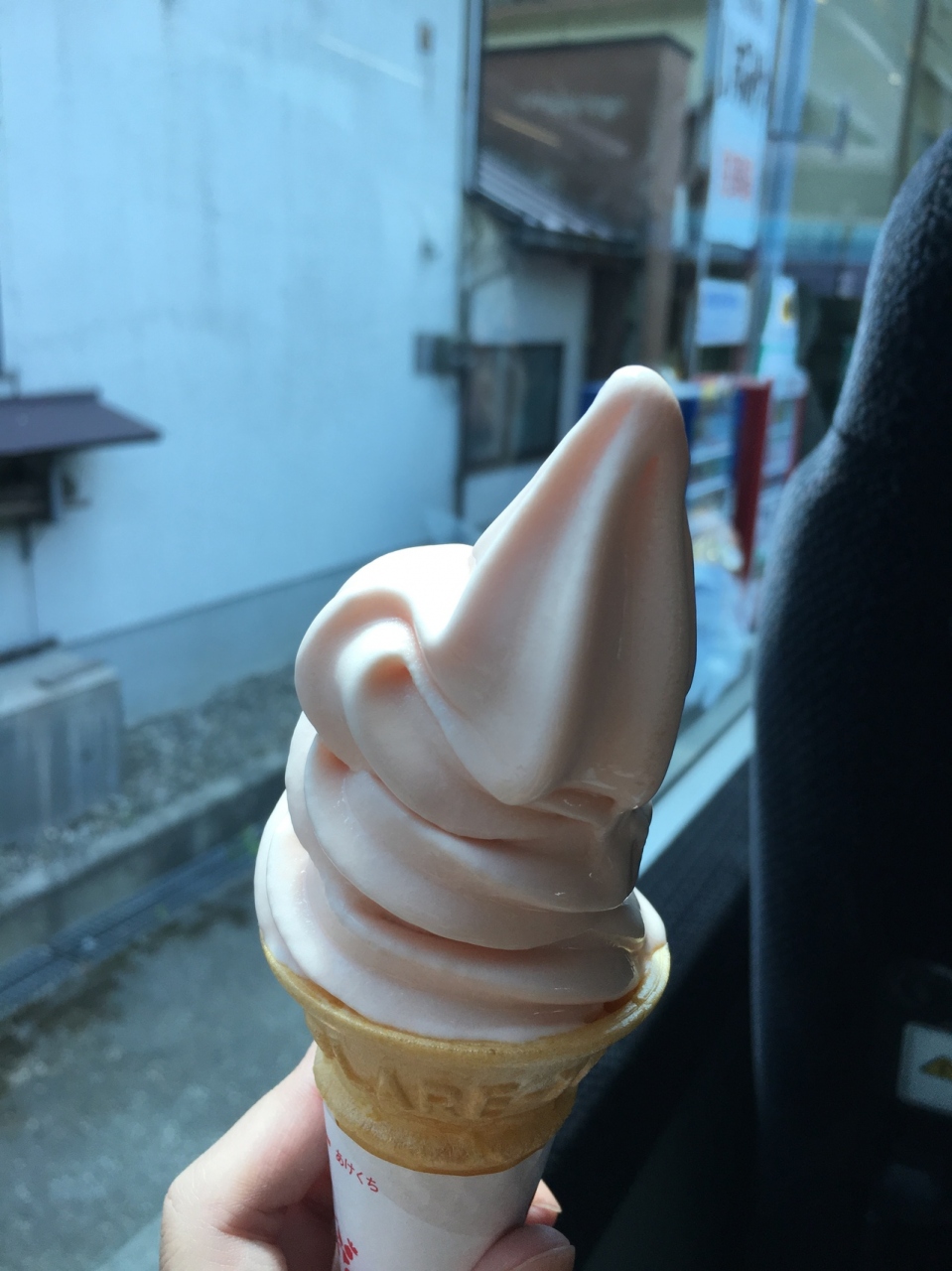 通常の土産物屋のように見えますが、実はさくらんぼソフトクリームが有名なお店です。一口食べるとさくらんぼの果実感が口に広がり、幸せな気持ちになれます。よく見るさくらんぼソフトクリームとは一線を画した、本物のさくらんぼソフトクリームのお店です。