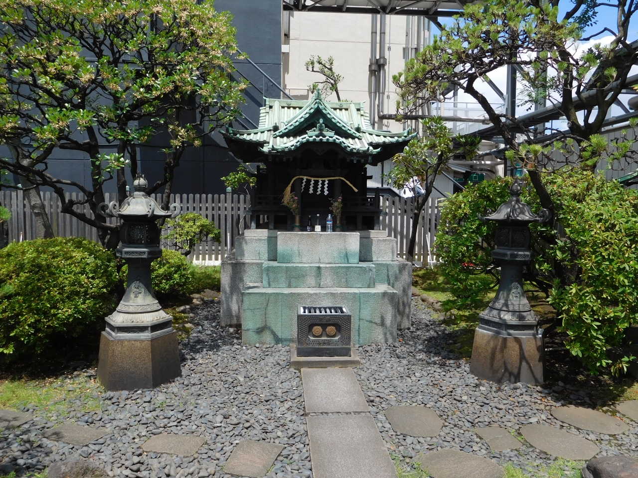 松屋銀座の屋上(R階)の一角にありました。屋上には椅子などが置いてあり、フリースペースとして開放されているので、お弁当を食べたりしている会社員の姿が多くみられました。その一角に、こじんまりとしたスペースではありますが、しっかりとした神社が設けられていて、驚きました。屋上まで直行しているエレベーターが少ないので、8階で乗り継ぎましたが、新たな発見が出来て良かったです。