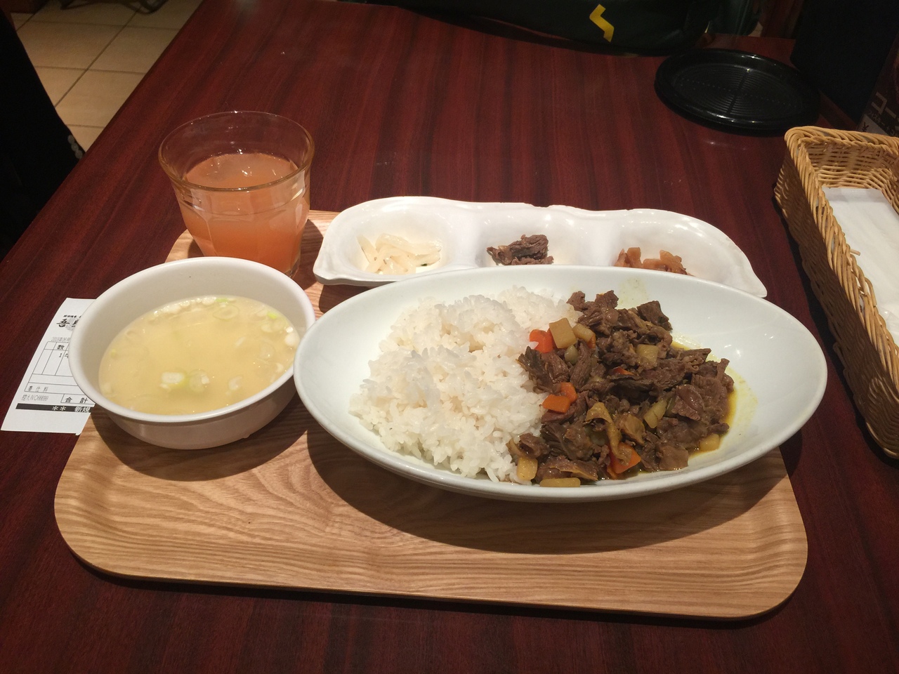 食べたのは限定10食牛すじカレーセット!ドリンクバーが付いて500円税込のワンコインは嬉しい限りです。他のメニューもワンコインですよ(^ ^)