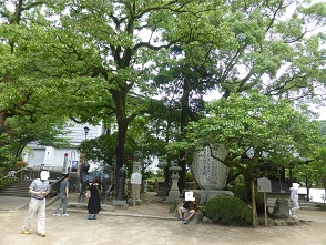参拝後に九州国立博物館へと向かいます。楼門を出て一つ目の鳥居をくぐり左手に麒麟と鷽の像がありその横にこの碑があります。
