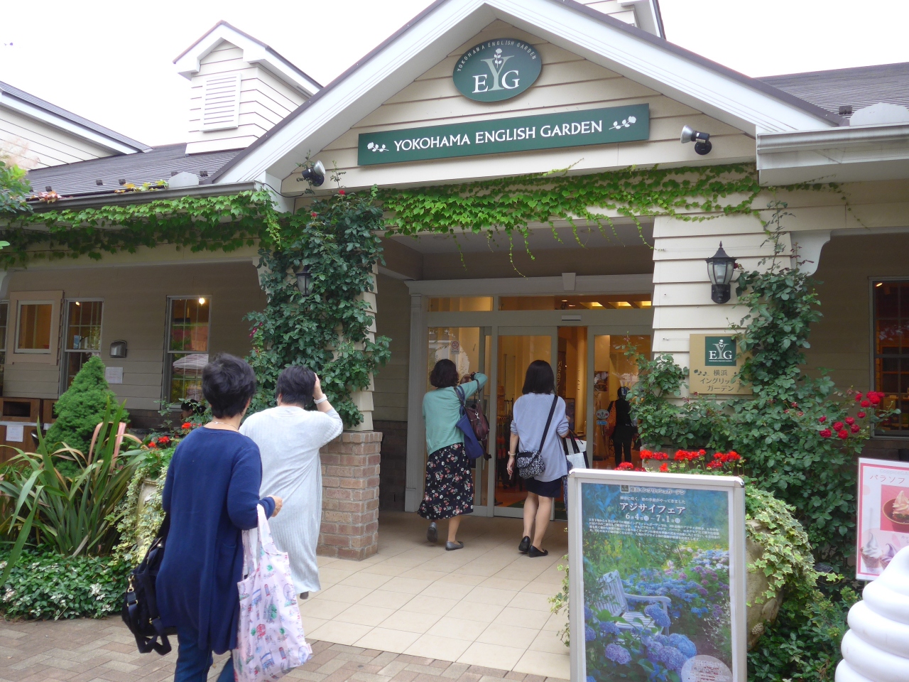 紫陽花が綺麗な季節の休日を近場で見れるということで横浜イングリッシュガーデンに行ってきました。横浜駅西口のバス発着所(りそな銀行前)で循環無料バスで約10分ほどで到着します。入園し順路に従って廻りましたがたくさんの紫陽花の花が満開そして少し季節が遅いと思っていましたがたくさんのバラの花も見ることが出来ました。