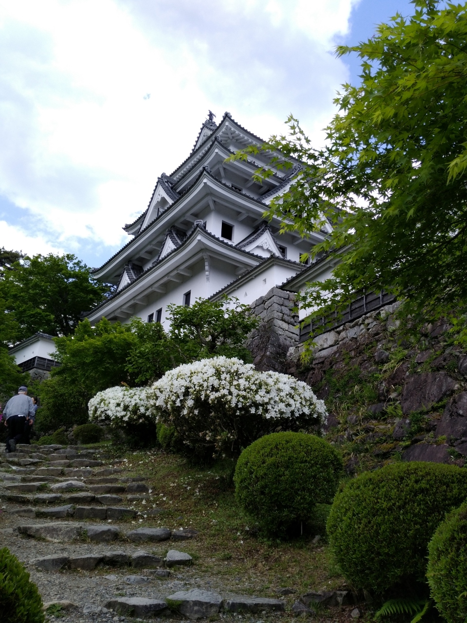 郡上八幡城に行きました。郡上八幡の市街を見下ろす山の上にあります。郡上八幡市内は道も細く、人通りも多くて車では走りにくいです。城にあがる細い上り坂の途中に駐車場あり。そこから歩いて登山ですが、今回は車で城裏の駐車場まで上りました。一方通行の細い道をあがると20台ほど止められる駐車場まで行けます。足の悪い方はこちらの方が良いでしょう。お城は再建ものですが、木造でそれなりの雰囲気はあります。ただ軋み音がすごいです。
