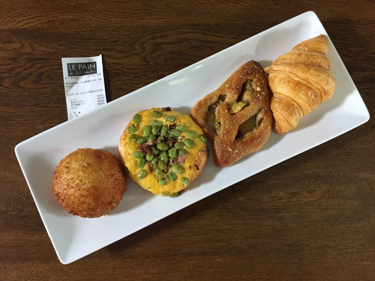 夏限定商品の「枝豆のフォカッチャ」を購入しました。ベーコンと枝豆のコンビは日本的なテイストで、お値段もロブションのパンの中では良心的な気がします。ロブションのクロワッサンは、近隣のベーカリーよりバター感が強く美味しいです。その分お値段もリッチですが許容範囲内です。