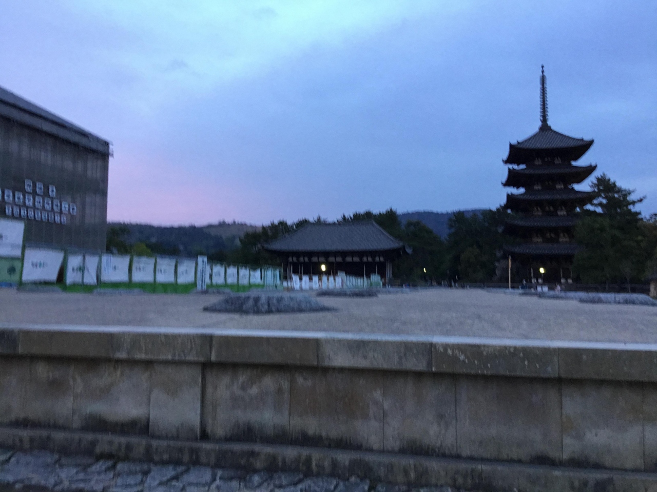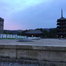大きな工事用の覆いの中で 落慶法要に向けて再建工事が行われていますが その前には前庭を挟んだ中門の礎石がきれいに並んでいて いずれは中門やその周りの廻廊も再建される計画だそうで まだまだ先のことではありますが 礎石を眺めながら想像するだけでも 楽しみです。