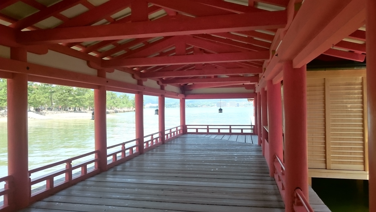 厳島神社の回廊には潮の満ち引きの変化にも耐えられるように、目透しという隙間が床板にあります
