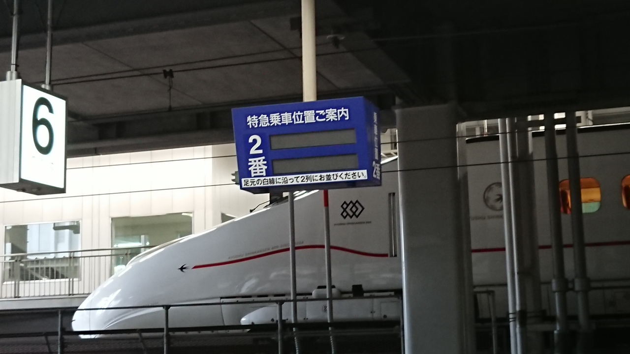 博多駅の在来線のホームから800系新幹線つばめを見上げました。