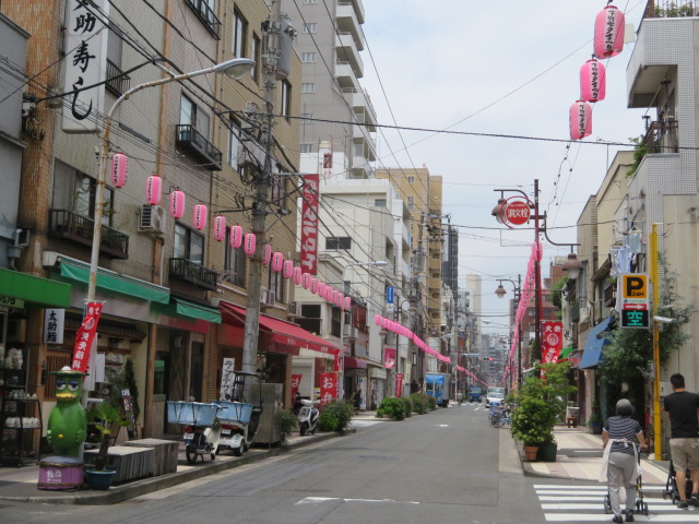 かっぱ橋道具街とかっぱ橋本通りを歩きました、道具街の大通り両側には店舗が並んでいます、調理道具、厨房機器、食器、提灯やのれん、サンプル、ユニホームなど関連商品が売られていました。