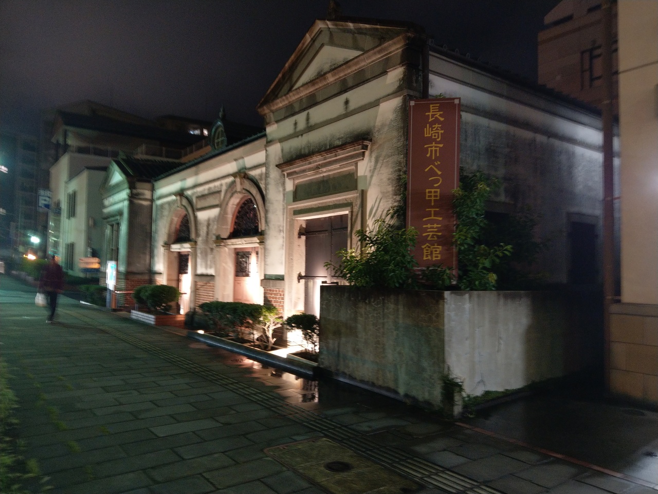 昼間は軍艦島に行ったりで時間がなく、帰りの飛行機も午前便だったので、夜はライトアップされているスポットをお散歩することにしました。