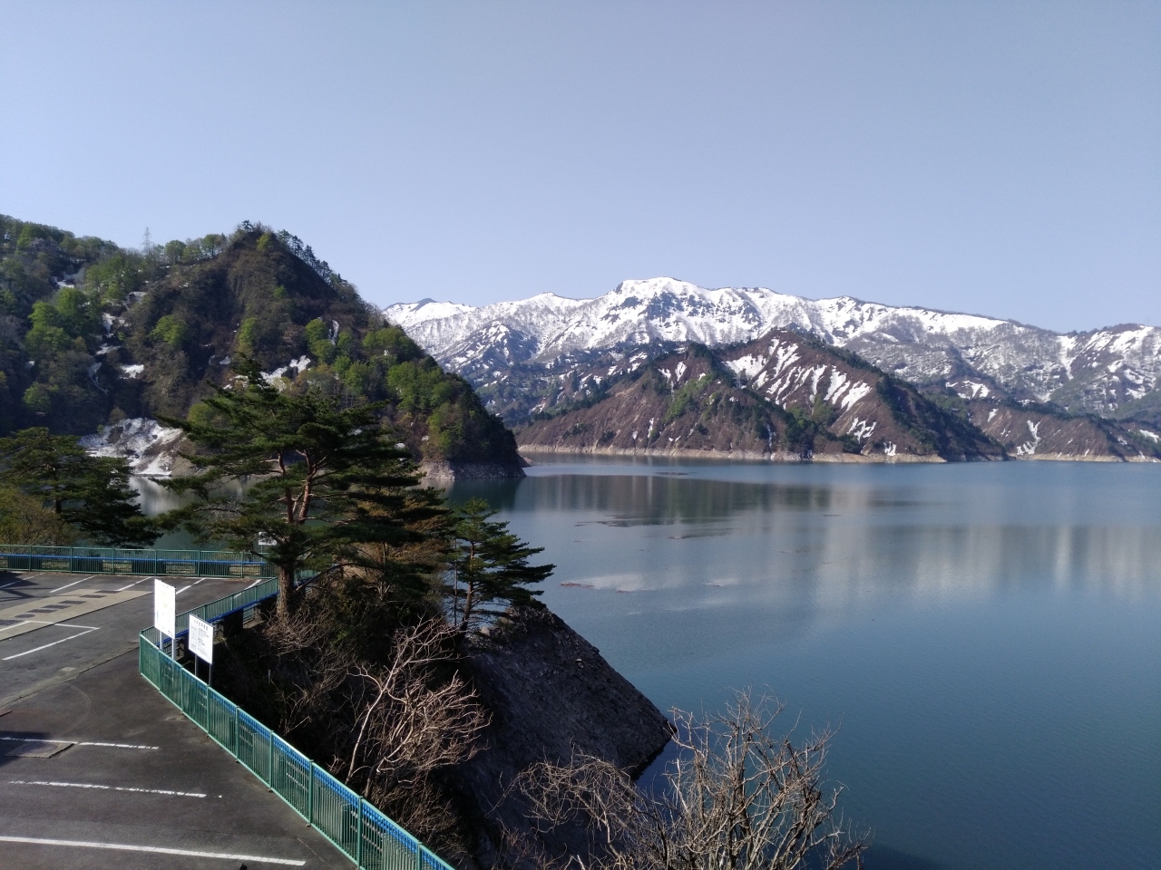 只見駅から新潟県魚沼に向けて252号線で抜けて行きました。道中の見所として、田子倉ダムと田子倉ダムにより出来た人造湖の田子倉湖ですね。冬季用のスノーシェードが連続する眺めの良い場所が多数あります。GWでしたが、まだまだ雪がたくさん残っていました。