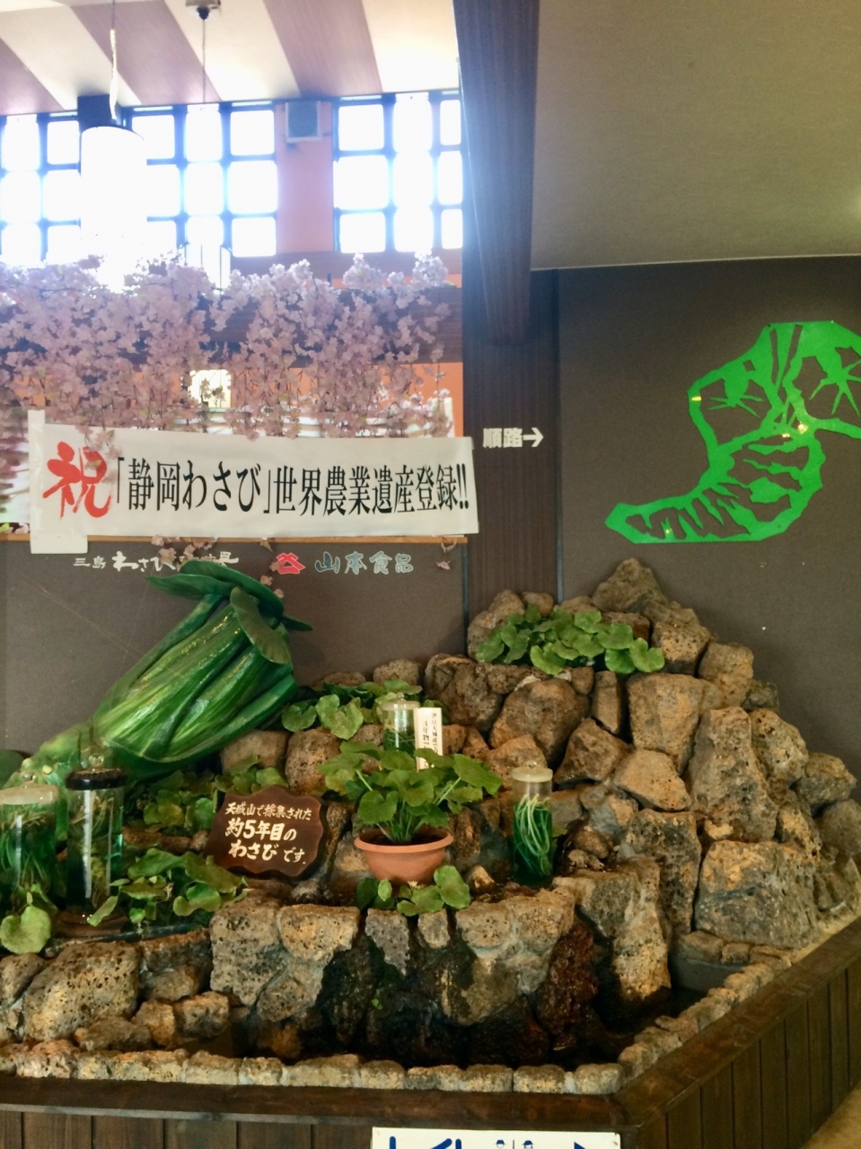 わさび関係のお菓子などがズラリと並び、試食もあります。