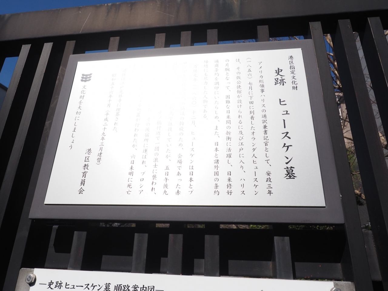 幕末の日本総領事だったハリスの通訳兼秘書官だったヒュースケンのお墓があります。