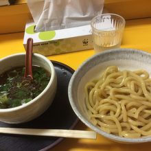 つけそばを注文しましたが麺がものすごく太くてびっくりしました。