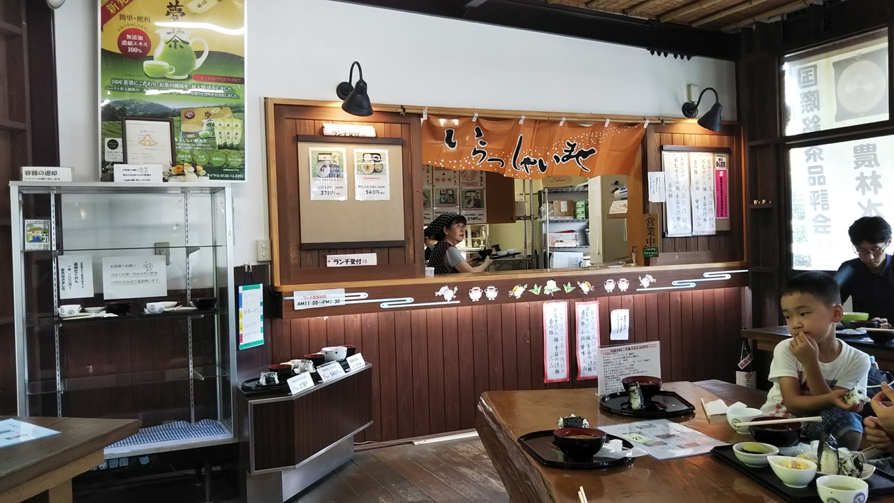 小國神社にお参りしたあとに立ち寄りました。森町は茶所で有名でお茶屋さんが食堂もやってました。ランチはおにぎり、味噌汁、小鉢、デザートがついて540円。素朴でおいしかったです。茶店ではいろんなお茶を試飲させてもらいました。