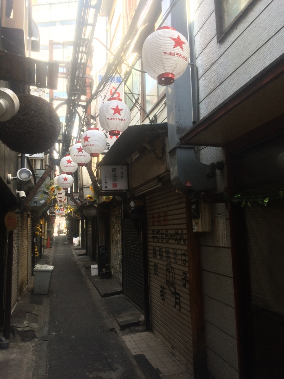 細い路地裏に小さな店が集まり一杯飲み屋が殆どですが、そば屋、牛丼屋等もあります。夜のネオンの雰囲気は良い感じでしたが昼は昭和時代の昔の雰囲気でした。朝には業者の人が掃除していて綺麗になっていました。トイレは共同トイレがあります。