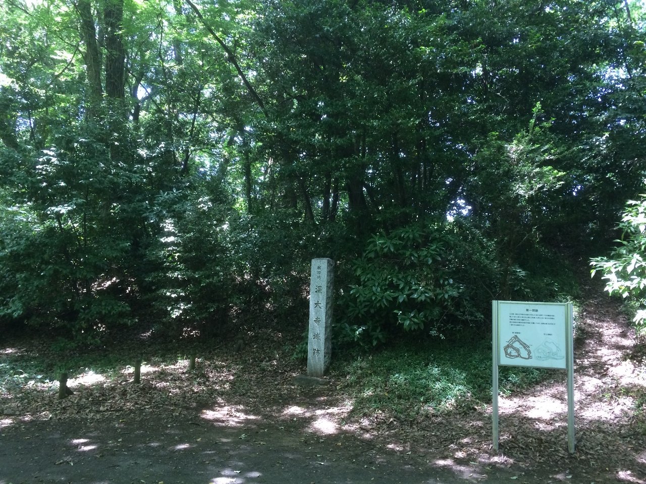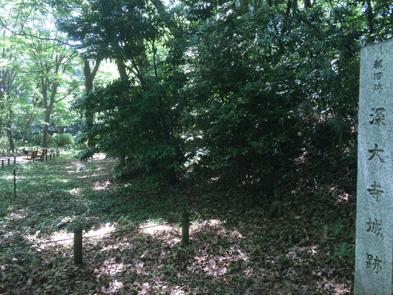 神代植物公園水生植物園の上部にあり天守閣等の建物は残っていないですが、堀の跡があり広い敷地でした。途中には石垣がありましたが昔のものかは不明です。緩やかな上り坂だったので難なく行くことが出来ます。城跡内にはそば畑もありました。
