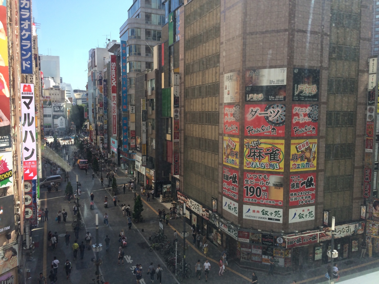 エスカレータを上がると、歌舞伎町を広い窓から見下ろすことができて眺め良し。