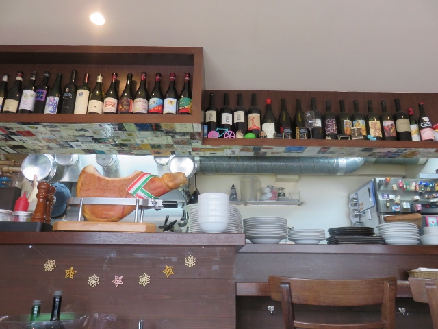 お店はテーブル席とカウンターで、さほど広くありませんが、薪がまで焼かれるピザの様子見ることができます