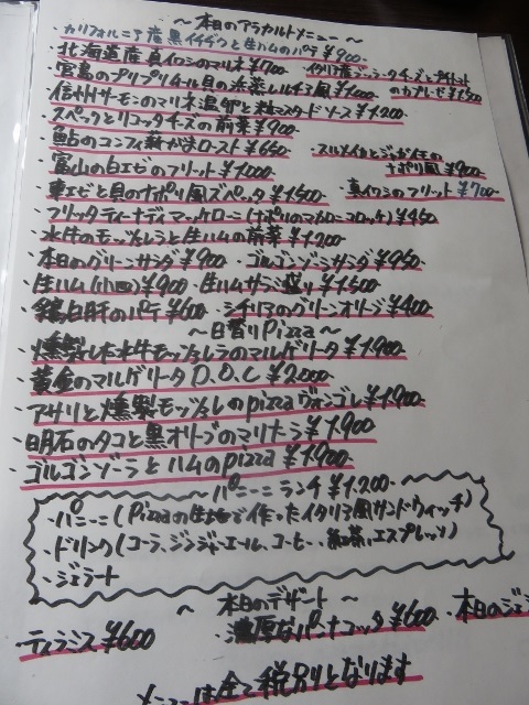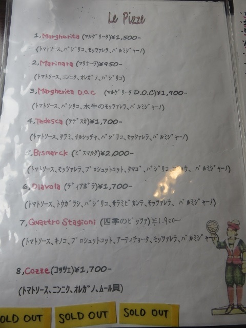 ピザは8種類、アラカルトメニューはたくさんあり、選ぶのに迷うほどです