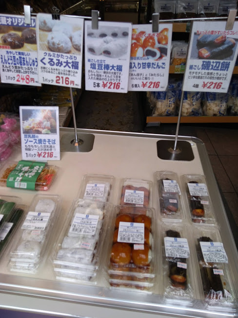 クルミ大福や絹ごし磯部餅がおススメです。両方とも216円