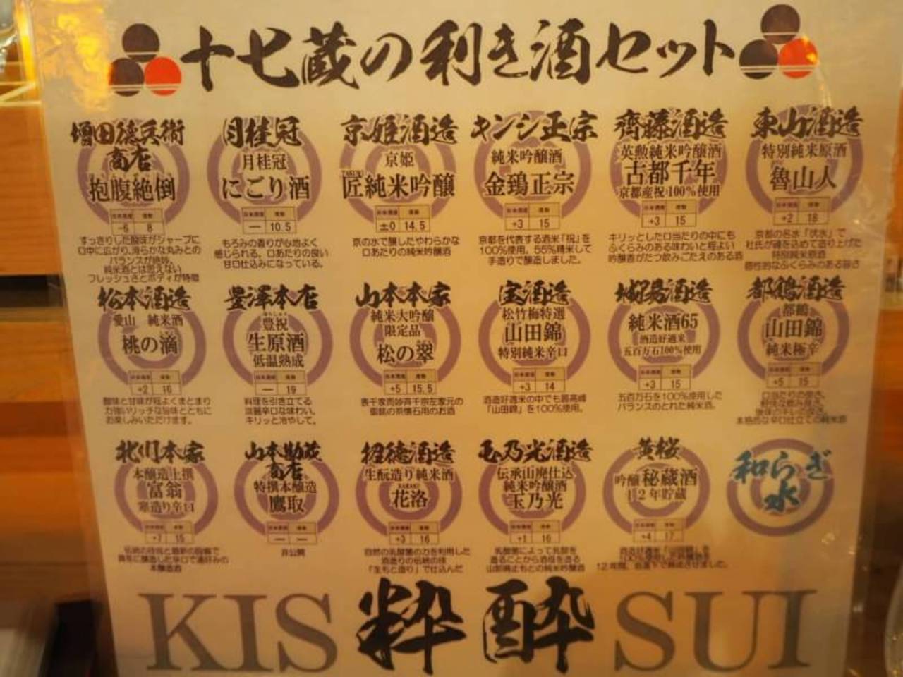 全部飲むとだいたい2合弱になるそうです。なのでかなり少しずつしか入っていませんが、なかなかここまでの種類を一度にたくさん試せるお店は探してもないのではないかと思います。