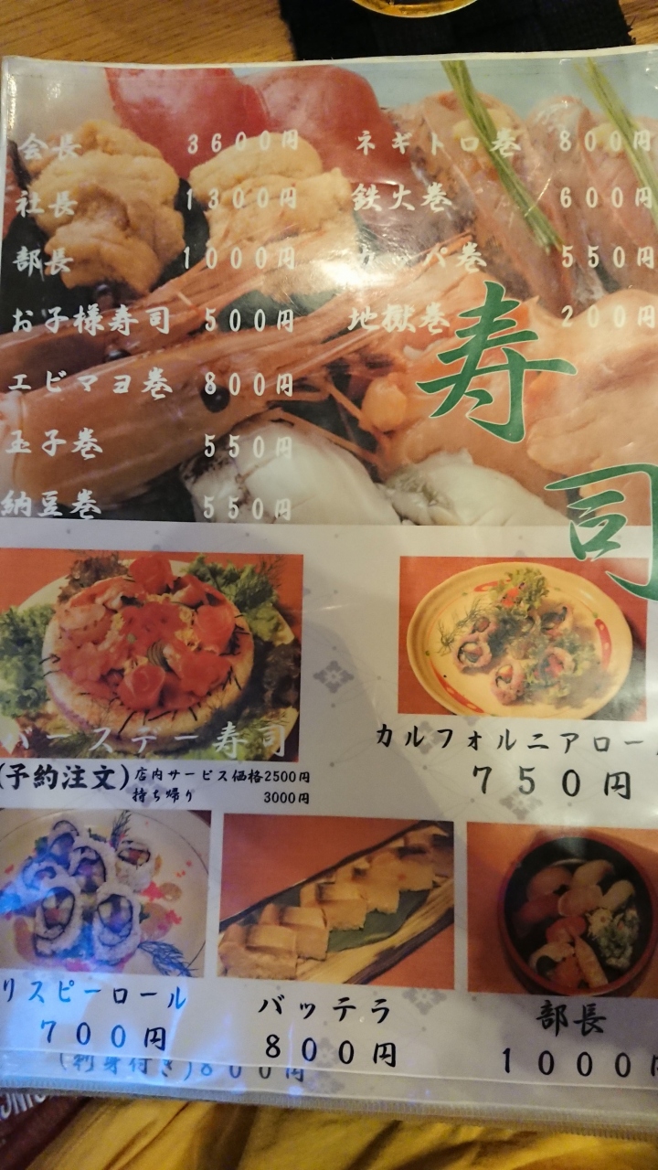 沖縄料理はもちろんのこと、結構お寿司にも力をいれてるようす。