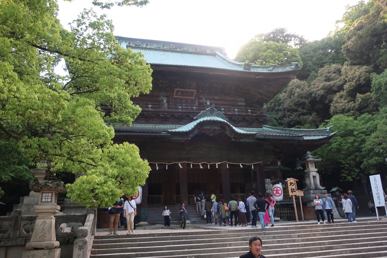金比羅宮の祓戸社、火雷社の先の石段を上った先に金比羅宮の一番目の見所である旭社が現れます。二層入母屋造銅瓦葺き、総欅材で造られた大きな建物は店舗年間に造られた重要文化財に指定されています。立派な建物で本宮と間違えて戻る人も居るとか。それ位、立派です。