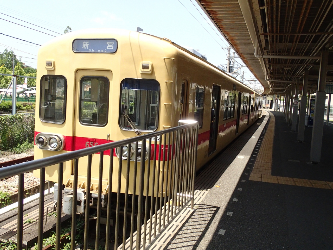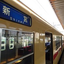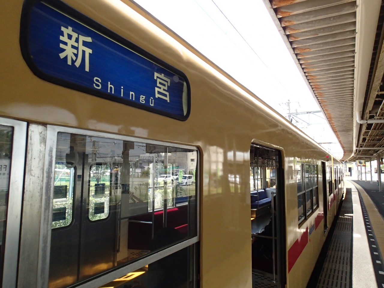 「新宮」行きの電車が入線してきましたが、丸目二灯のレトロの可愛い電車でした。
