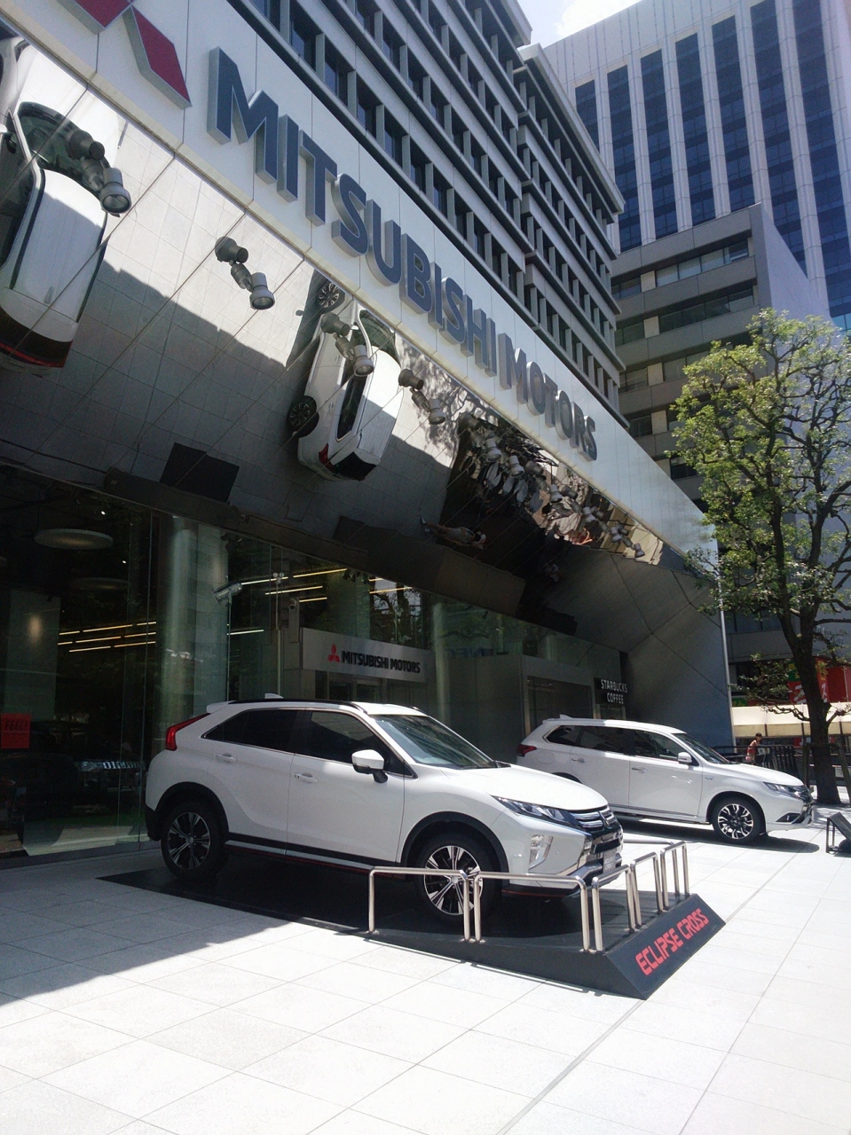 三菱自動車は、JR田町駅から徒歩数分、第一京浜沿いにあります。ショールームには、三菱自動車の新型車が何台か展示されていましたが、自動車にはあまり興味がないので、残念ながらこれと言って魅力的な感じはなかったです(自動車に興味がある人にはおすすめです。)。
