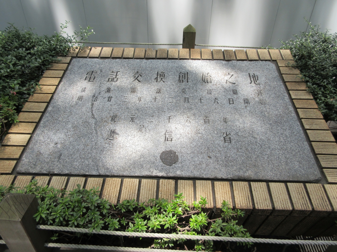 大さん橋通り沿い、大さん橋入口交差点近くに碑が建っています。1890年に横浜・東京間と横浜市内で、日本で初めての電話交換業務が行われたそうです。今でこそ携帯電話を使えば簡単に特定の人につながりますが、当時は大きな機械を使い、交換手がコードを一つずつ手作業でつなぐという、大変な労力が必要だったようです。当時の人に、今の電話機能をどう感じているか尋ねてみたい気がしました。