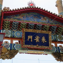 横浜中華街に建つ10基の門のうちの1つで、南門シルクロードの突当り、中華街の南に建っています。高さ13m、幅8mほどの門で、朱雀門と書かれた下には羽を広げた孔雀の姿が見られます。中国の門らしく、赤を基調に金色や青色で塗られた豪華絢爛な門で、中華街を守るにふさわしい姿をしていると感じました。中華街の端に位置しているため、ここまで来る観光客はほとんど見られず、ゆっくり観賞することができました。