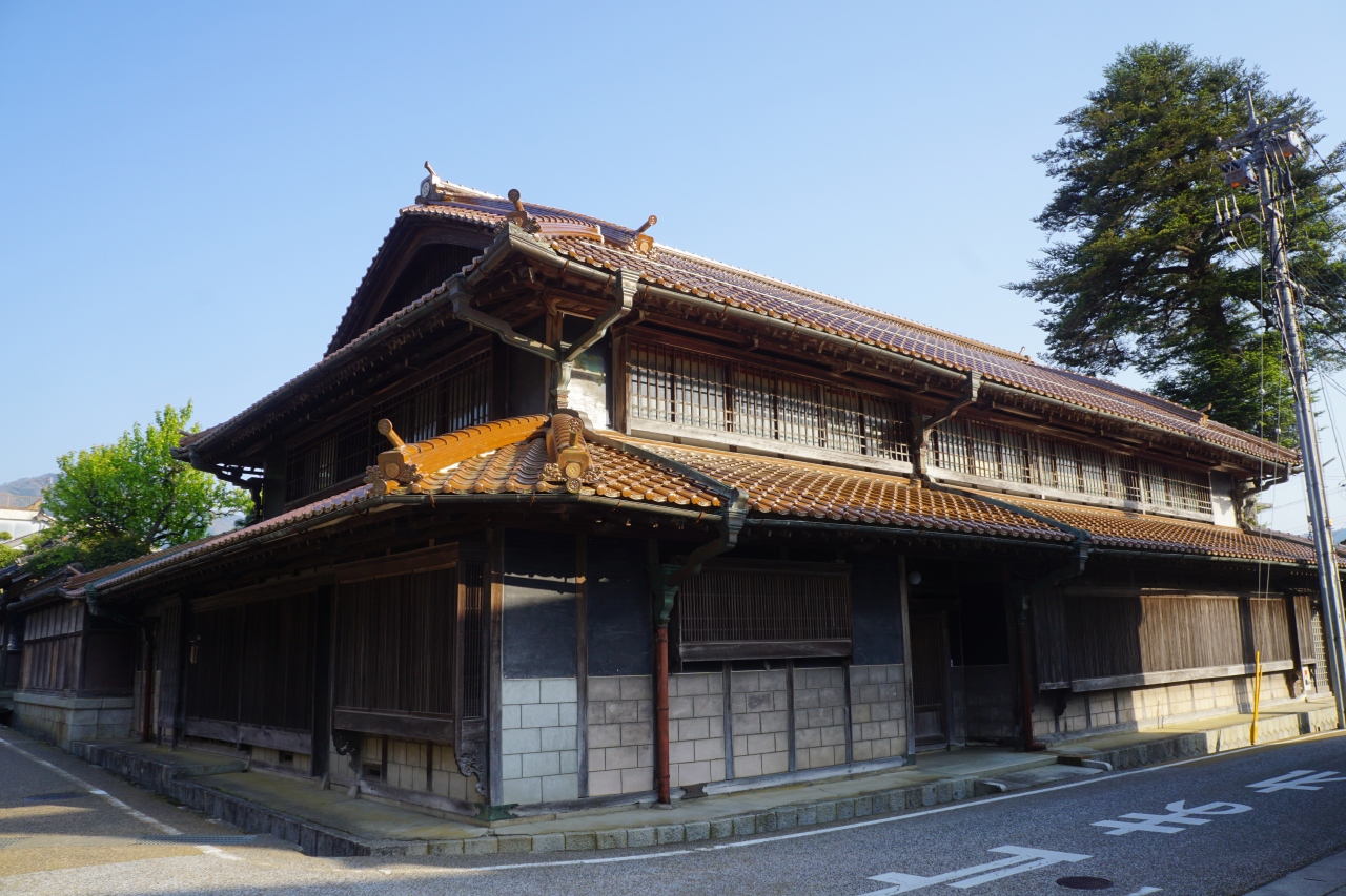 米原邸は、智頭往来と備前街道の辻に建つ豪華なお屋敷。表に「木綿屋」とあって、かつては木綿を扱っていた名残りでしょうか。内部は非公開で外観を確認できるだけですが、建物は見事なむくりの屋根。赤瓦と格子の窓もちょっと気品が漂っています。