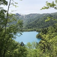 展望台はありますが、周囲は木々に囲まれているため、展望台からもわずかに見えるくらいです。それだけに、湖の色、周囲の雰囲気と併せて神秘的な湖なのだと思いました。