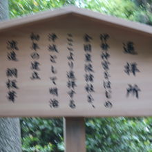 金刀比羅宮の旭社の先、賢木門を過ぎた右手に金刀比羅宮 遥拝所があります。この辺りは木々が茂っており、落ち着いた雰囲気の場所です。遥拝所とは伊勢神宮を参拝するための場所で、他の社とは違い、一つだけ東の方角、つまり伊勢神宮のある方向を向いて建てられています。案内板を見ると明治初年の建立とあり、余り古くはないようです。