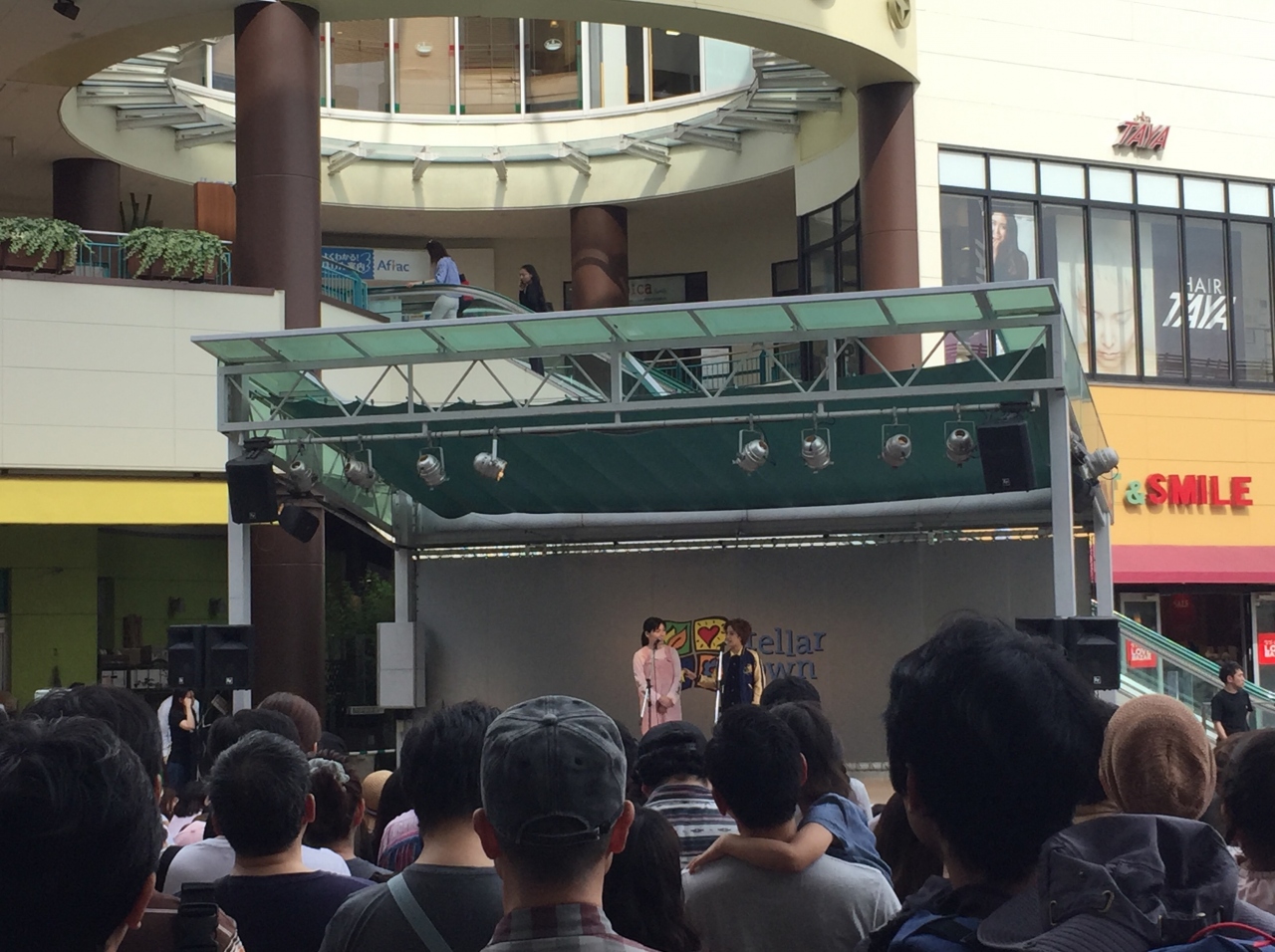 ステージでイベントも行われていて家族で休日を過ごせるショッピングモールです。先日、TVにも出ているお笑い芸人が出演しました。