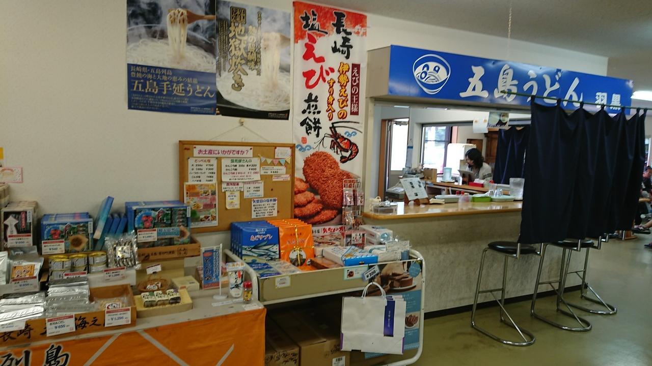 五島名物五島うどんを最後の最後に(もしくは着てすぐに食べる方もいるかも)手軽に食べることができます。