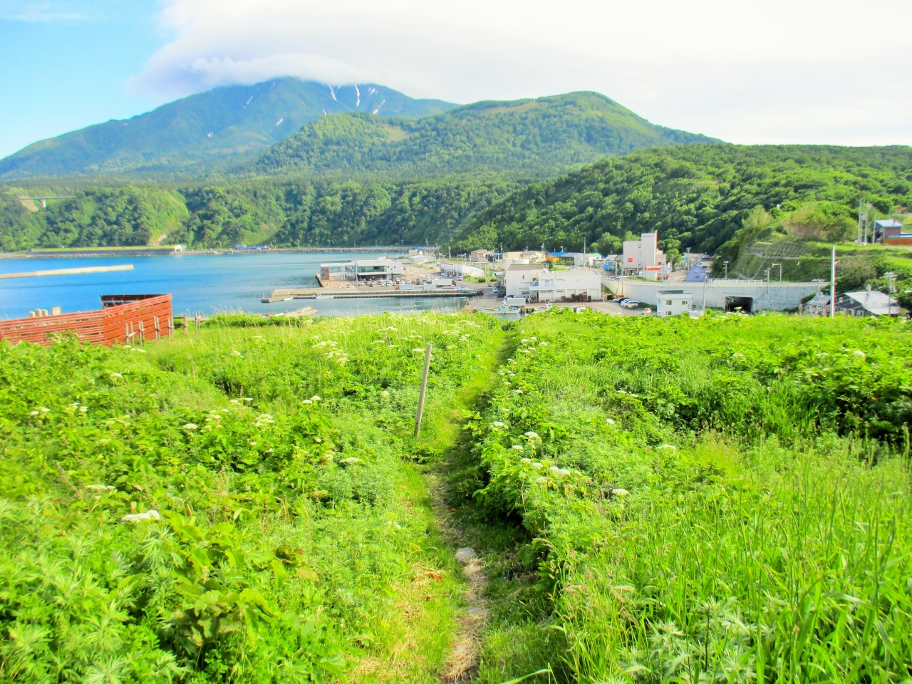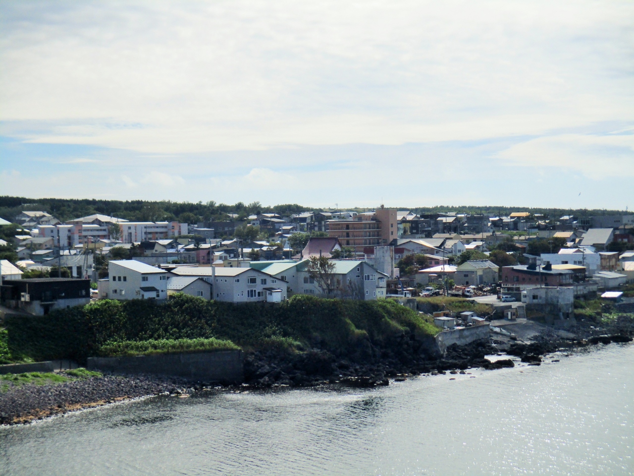 野崎展望台からフェリーターミナルの方角にこんもりとした山が見え、サイクリングの目的地にしてペシ岬を目指して自動車道路を漕いで行きました。