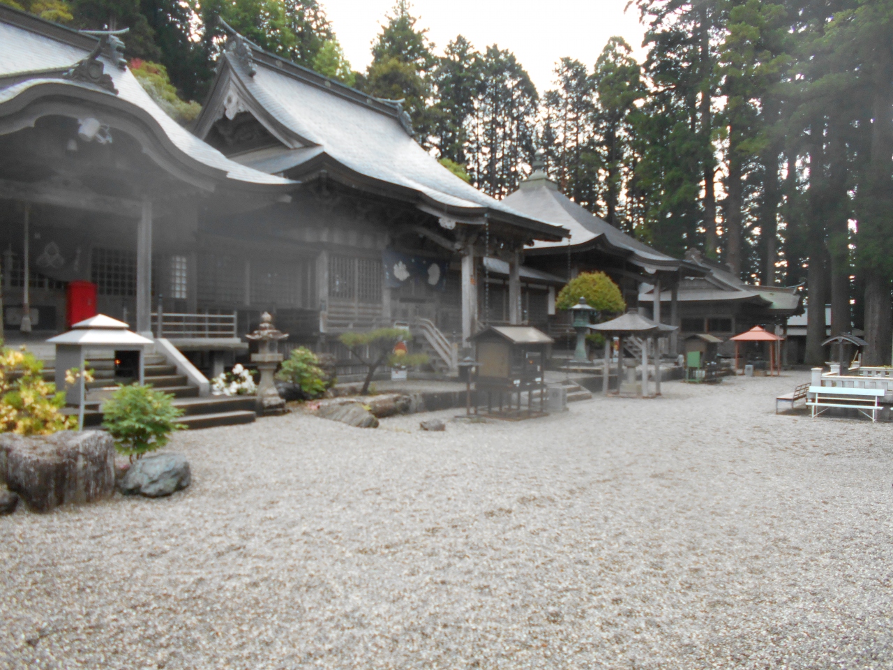 周囲を杉の大木が取り囲んでいて、スピリチュアル。訪ねた日は雨が降ったり止んだりで、霧がかかって幻想的な雰囲気が2割増でした。