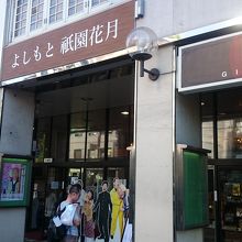 京都観光をした際、祇園を散策していたらちょうど発見しました。八坂神社の目の前で、まず迷うことはありません。正直、京都によしもとがあること自体知らなくて、チケットももちろん持っていなかったので中には入れませんでしたが、入り口入ってお土産コーナーもありました。