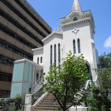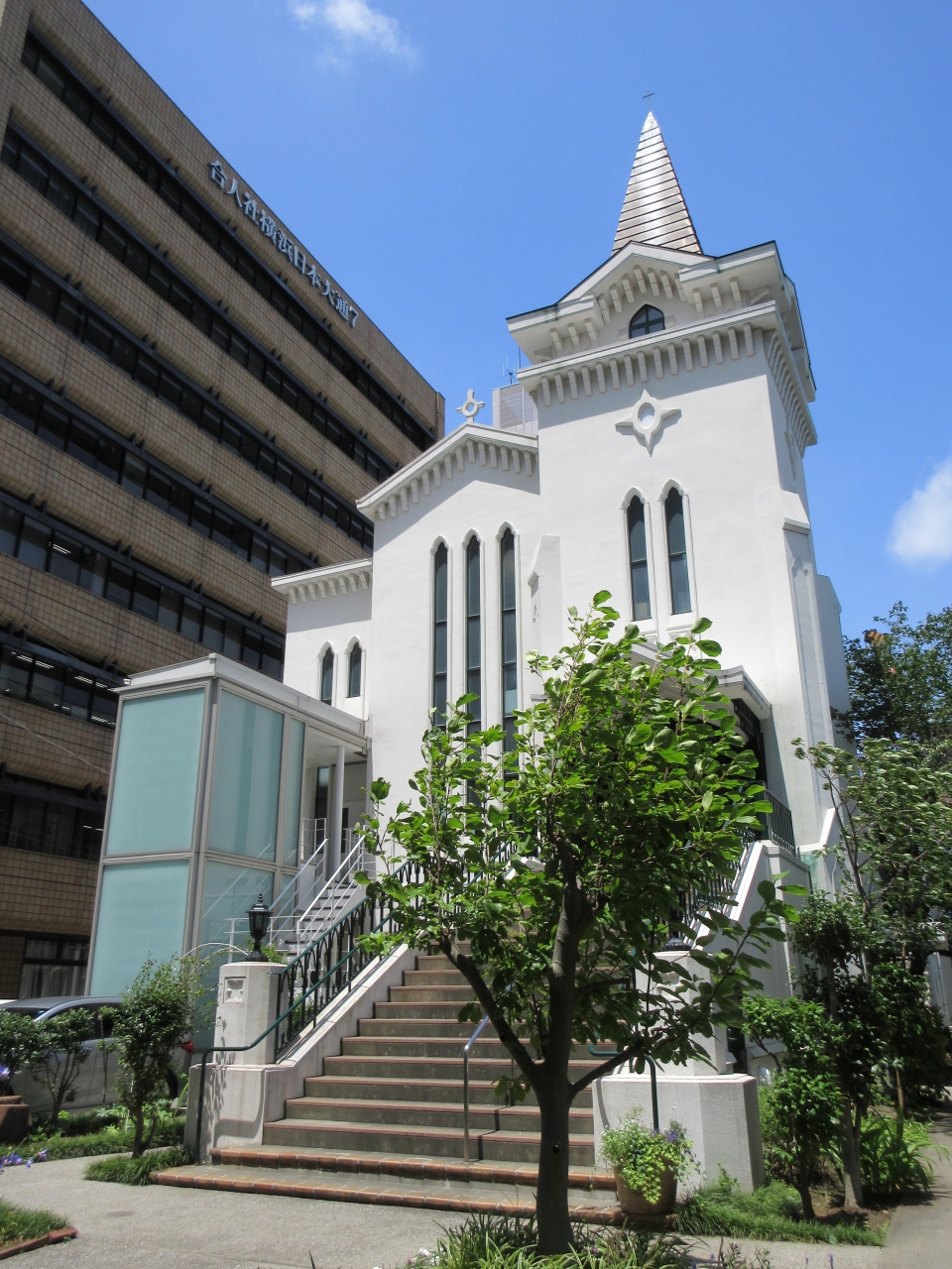 大さん橋通りに面した建物で開港広場の隣にあります。1868年に石造りの小会堂が造られたのが始まりです。関東大震災後に現在の会堂が再建されました。1875年に教会堂を建設した時にアメリカの諸教会から鐘が寄贈されました。戦時中、鐘の供出を拒み当時の牧師が投獄されたそうです。日曜日午前に山下公園を中心に散策していた時、鐘の音色が響き渡っていました。守り抜かれた鐘だと後で知り感慨深いものがありました。観光客が行き来する大さん橋通りにあって日常の生活空間を保ち静かな雰囲気の敷地内でした。